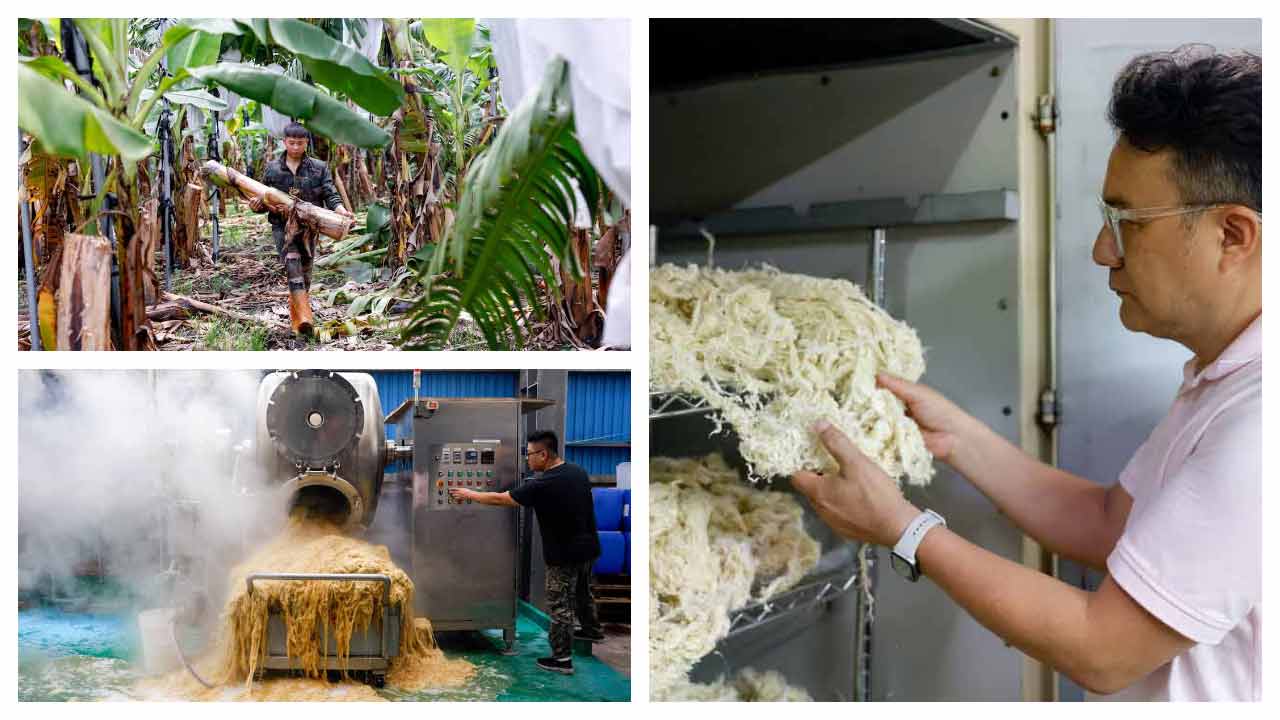 ইয়াংয়ের কোম্পানি কলা গাছের মাঝের অংশ — যা সাধারণত কলা কাটার পর মাঠেই ফেলে দেওয়া হয় — তা সংগ্রহ করে চেপে ও শুকিয়ে আঁশ তৈরি করছে। এসব আঁশ থেকে কাপড় তৈরি সম্ভব।