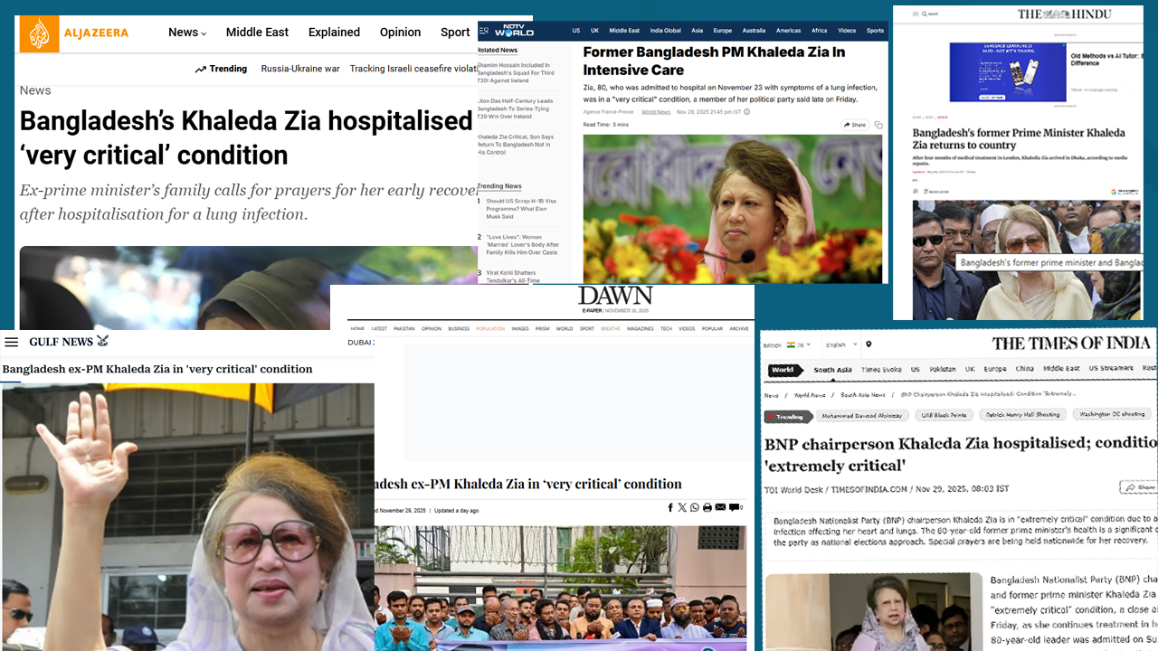 টাইমস অব ইন্ডিয়া, দ্য হিন্দু, হিন্দুস্তান টাইমসও খালেদা জিয়ার শারীরিক অবস্থার অবনতির বিষয়টি বেশ গুরুত্বের সঙ্গে প্রচার করেছে।