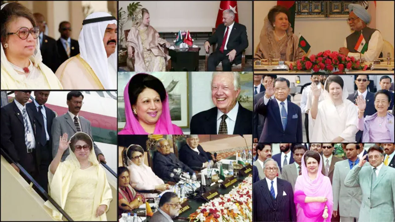ছবিতে বিভিন্ন সময় অন্য দেশের নেতাদের সাথে খালেদা জিয়া