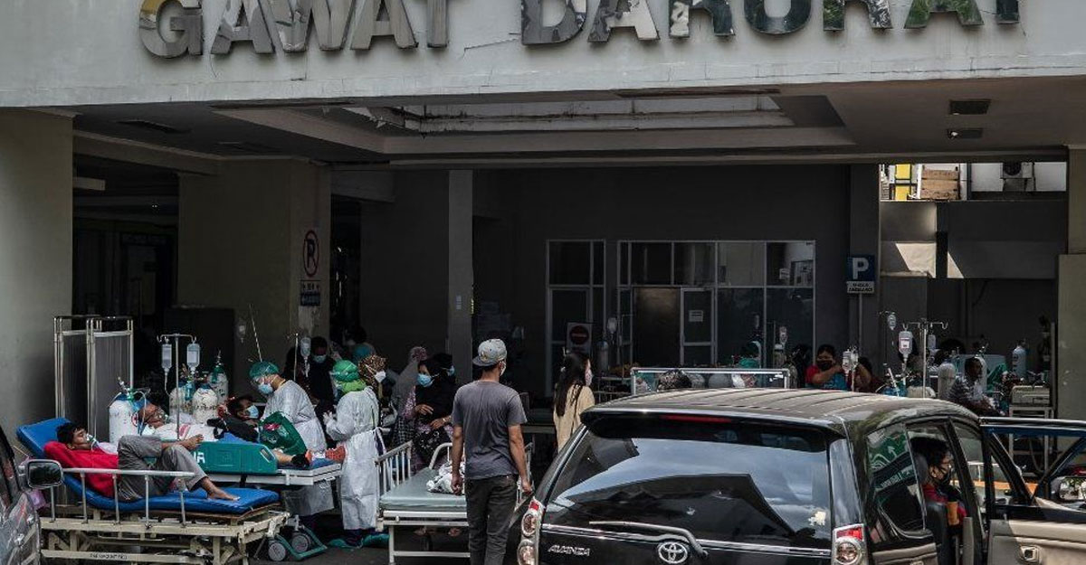 করোনা সংক্রমণ ব্যাপকভাবে বৃদ্ধি পাওয়ায় ইন্দোনেশিয়ার অনেক হাসপাতালের বাইরে এভাবেই দরজার সামনে রোগীদের চিকিৎসা সেবা দেওয়া হচ্ছে