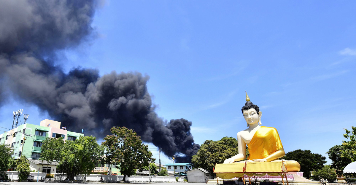 থাইল্যান্ডের টিপিবিএস টিভি জানিয়েছে, বিস্ফোরণের ধাক্কায় কারখানা সংলগ্ন বাসভবনগুলোর দরজা-জানালার কাচ ও কংক্রিটের অংশ ভেঙে টুকরো টুকরো হয়ে ছড়িয়ে পড়ে সড়কে। গোটা এলাকা ঢেকে যায় কালো ধোঁয়ায়। আশপাশের কয়েকটি ভবনে আগুন ছড়িয়ে পড়েছে।
