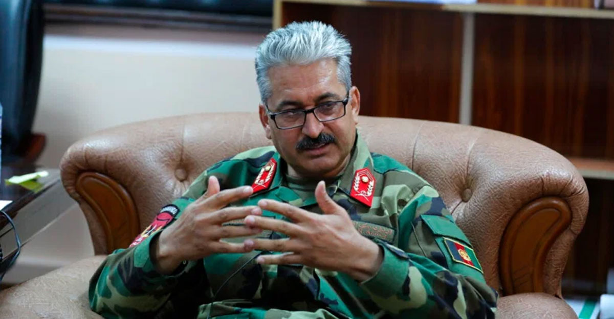 সংবাদসংস্থা এপি’র সঙ্গে কথা বলছেন বাগরাম সামরিক ঘাঁটির নতুন কমান্ডার জেনারেল মীর আসাদুল্লাহ কোহিস্তানি
