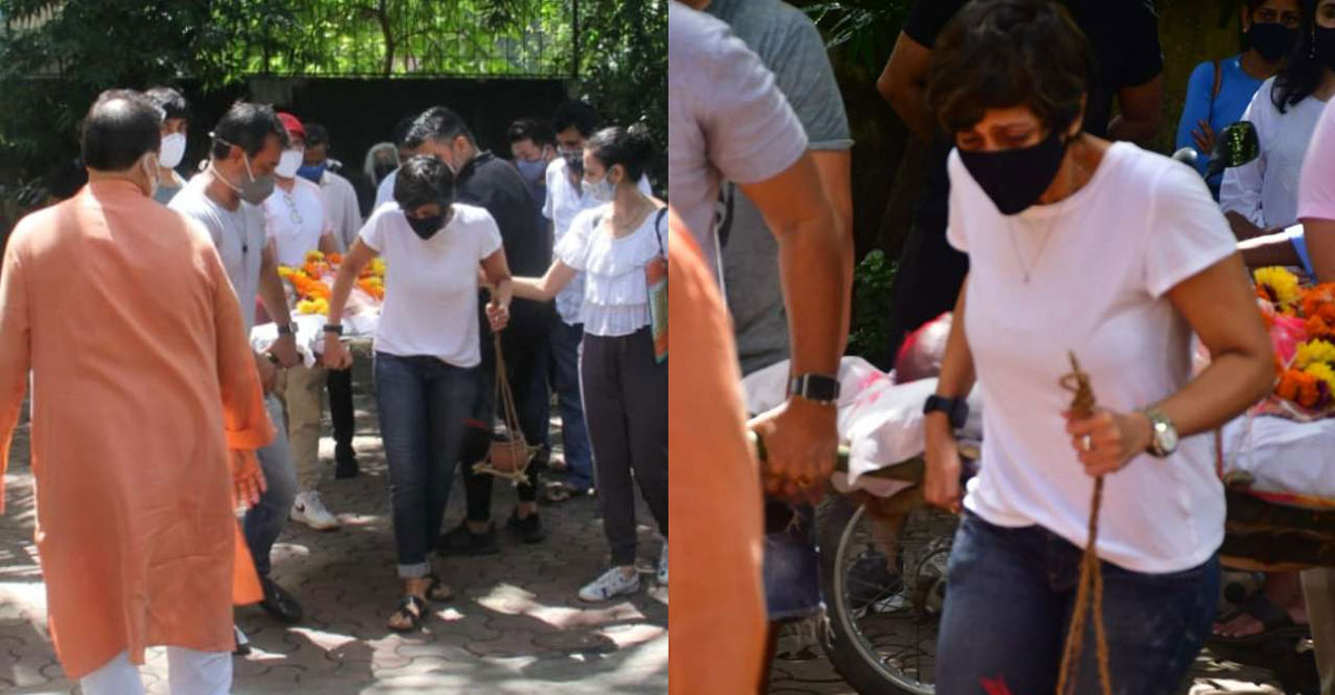 মন্দিরা বেদী এক হাতে মাটির পাত্র আর অন্য হাতে স্বামীর মরদেহ বহনকারী বাঁশের খাট বহন করে কাঁদতে কাঁদতে শ্মশানে যাচ্ছেন, এটা ভারতীয় সমাজে বেশ বিরল একটি দৃশ্য। স্বামী রাজ কৌশলকে চিতায় তোলার পর তার মুখাগ্নিও করেছেন মন্দিরা বেদী।