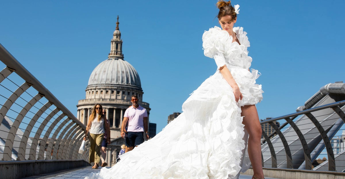 লন্ডনের সেন্ট পলস ক্যাথেড্রাল চার্চে বিবাহ অনুষ্ঠানে কনে পরেন এই মাস্কের তৈরি গাউন। হিচড বলছে, প্রতিদিন ১০ কোটির বেশি মাস্ক ব্রিটেনে বাতিল করা হয়। সেই মাস্ক থেকে যদি এমন কিছু সৃষ্টি করা যায়, তাহলে দূষণ অনেকটাই কমে।
