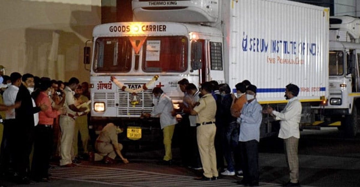 মঙ্গলবার সকালে সেরাম ইনস্টিটিউট থেকে শীতাতপ নিয়ন্ত্রিত ট্রাকে করে প্রথমে টিকাগুলোকে পুনে বিমানবন্দরে নেওয়া হয়। সেখানে অপেক্ষমান কার্গো বিমানে করে বিভিন্ন রাজ্যে ও শহরে পাঠানো হয় এই টিকা।