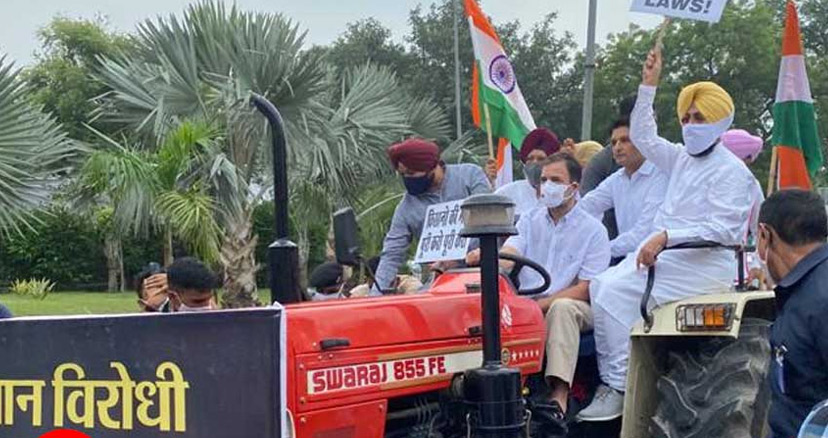 সোমবার দলের সমর্থকদের নিয়ে ট্রাক্টর চালিয়ে সংসদ ভবনের উদ্দেশে রওনা হন রাহুল গান্ধী। ট্রাক্টরের সামনে টাঙানো ব্যানারে বড় বড় শব্দে লেখা ছিল, ‘কৃষকবিরোধী তিনটি কালো আইন প্রত্যাহার করুন।’