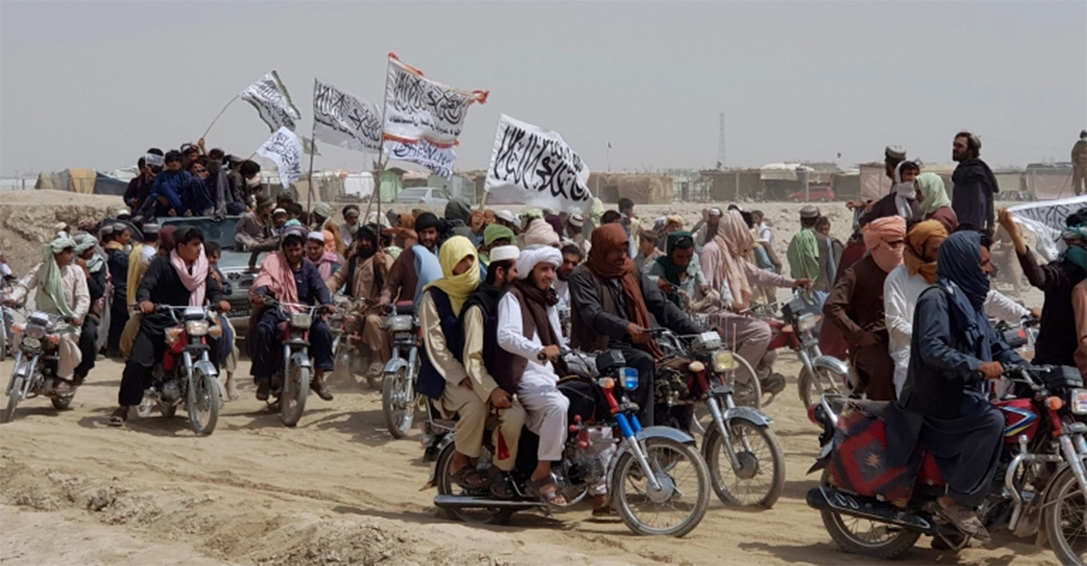 আফগান সীমান্তবর্তী শহর দখলের পর তালেবান সমর্থকদের মিছিল