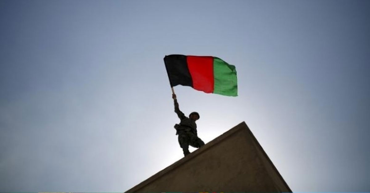 কাবুলের একটি সামরিক প্রশিক্ষণ কেন্দ্রে আফগানিস্তানের পতাকা উড়াচ্ছেন দেশটির সামরিক বাহিনীর এক কর্মকর্তা। ২০১৫ সালের অক্টোবর মাসের ছবি