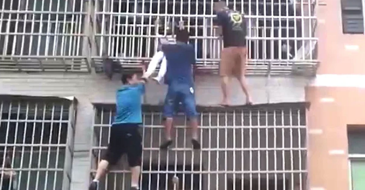 ঘটনাটি ঘটেছে চীনের হুনান প্রদেশে। সেখানকার একটি আবাসনেই আগুন লেগেছিল। হঠাৎ একটি ফ্ল্যাট থেকে ধোঁয়া বের হতে দেখা যায়। অল্প সময়েই সেখানে ভিড় জমে যায়। দেখা যায় যে ফ্ল্যাটে আগুন লেগেছে, সেখানে দুটি শিশু আটকে রয়েছে। ফায়ার সার্ভিসের জন্য অপেক্ষা না করে ছুটে যান ছয় যুবক।