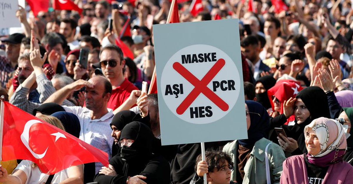 করোনা ভাইরাসের টিকা, করোনা পরীক্ষা ও মাস্ক পরাসহ করোনা সংক্রান্ত সরকারের নতুন কিছু নির্দেশনার বিরুদ্ধে প্রায় ২ হাজার তুর্কি শনিবার বিক্ষোভ করেছেন ইস্তাম্বুলে।
