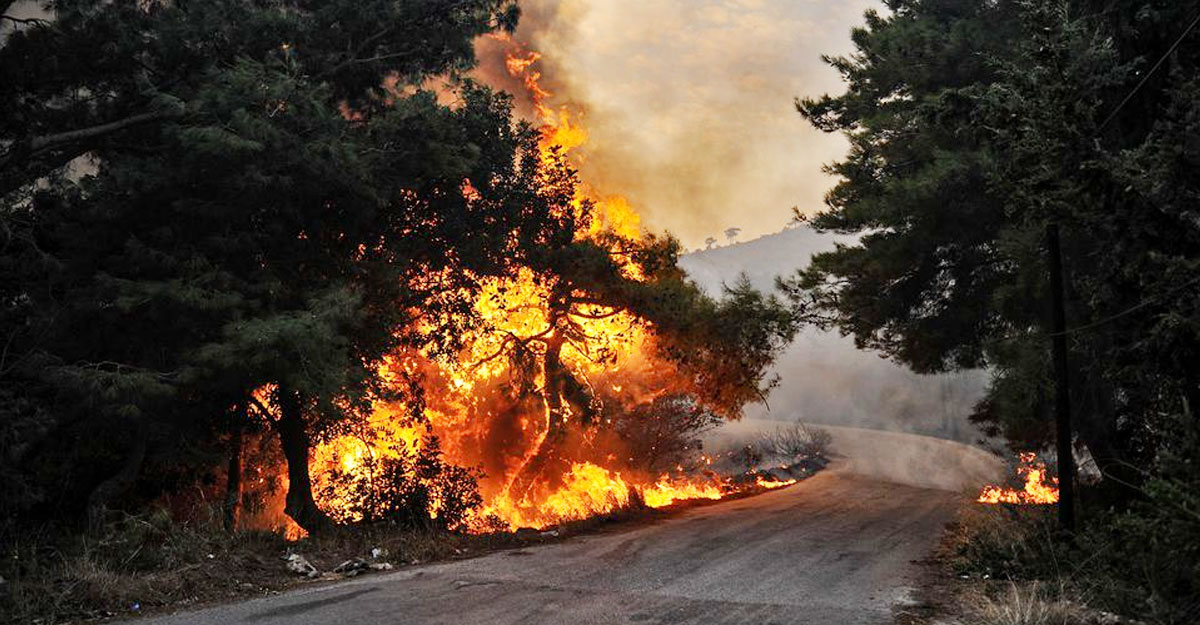 সিরিয়ার লাতাকিয়া প্রদেশের একটি বনভূমি পুড়ছে আগুনে। ২০২০ সালের ৯ অক্টোবর মধ্যপ্রাচ্যের এই দেশটির রাষ্ট্রীয় বার্তাসংস্থা সানা এই ছবি প্রকাশ করে