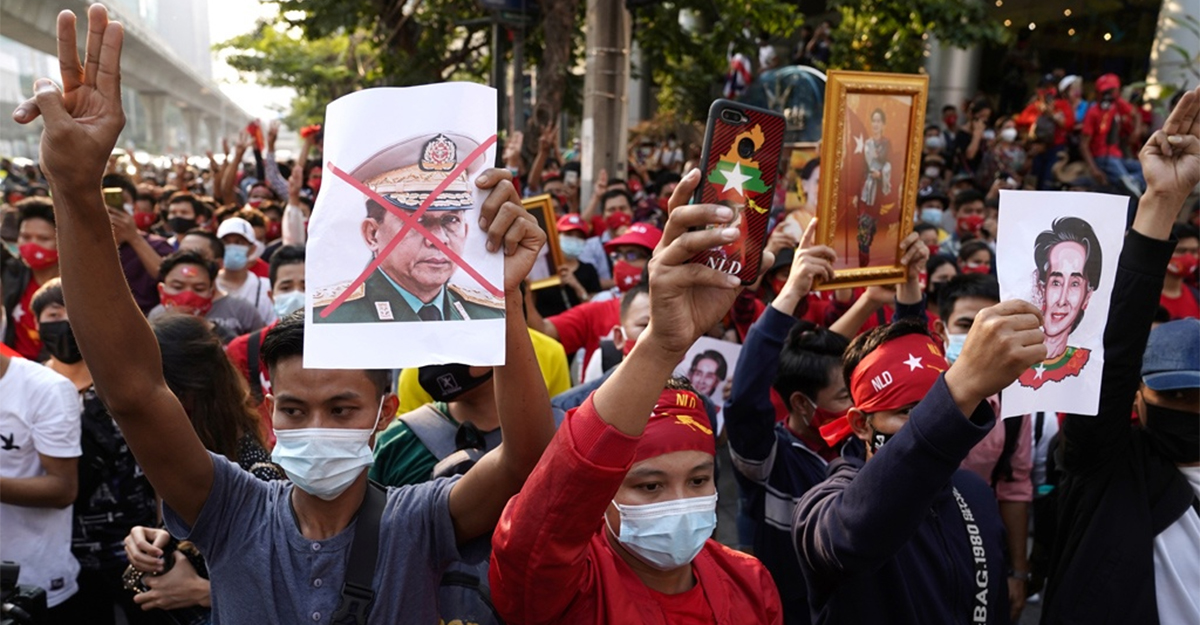 শুক্রবার দেশের সবচেয়ে বড় শহর ইয়াঙ্গুনে সমবেত হয়ে বিশ্ববিদ্যালয় শিক্ষক-শিক্ষার্থীরা দেশনেত্রী অং সান সু চিসহ ক্ষমতাচ্যুত দল ন্যাশনাল লিগ ফর ডেমোক্র্যাসির (এনএলডি) অন্যান্য শীর্ষস্থানীয় নেতাদের সমর্থনে স্লোগান দিয়ে স্বৈরশাসনবিরোধী বিক্ষোভ করেন।