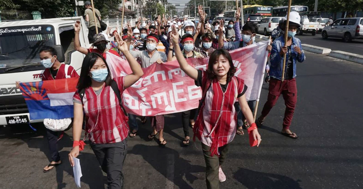 বিক্ষোভকারীরা বেসামরিক সরকারের হাতে ক্ষমতা হস্তান্তর এবং দেশটির ডি-ফ্যাক্টো নেত্রী অং সান সু চির মুক্তির দাবি জানিয়েছেন। গত সোমবার সামরিক বাহিনী ক্ষমতা দখলে নেওয়ার পর এ ধরনের প্রথম বড় বিক্ষোভ করলেন ইয়াঙ্গুনে। এ সময় বিক্ষোভকারীরা ‘সামরিক স্বৈরশাসক, ব্যর্থ, ব্যর্থ’, ‘গণতন্ত্র, জয়, জয়’ স্লোগান দেন; তাদের হাতে ‘সামরিক স্বৈরশাসক নিপাত যাক’ ব্যানারও দেখা যায়। ইয়াঙ্গুনের বাসিন্দারা বিক্ষোভকারীদের বিভিন্ন ধরনের শুকনা খাবার ও পানি সরবরাহ করেন।
