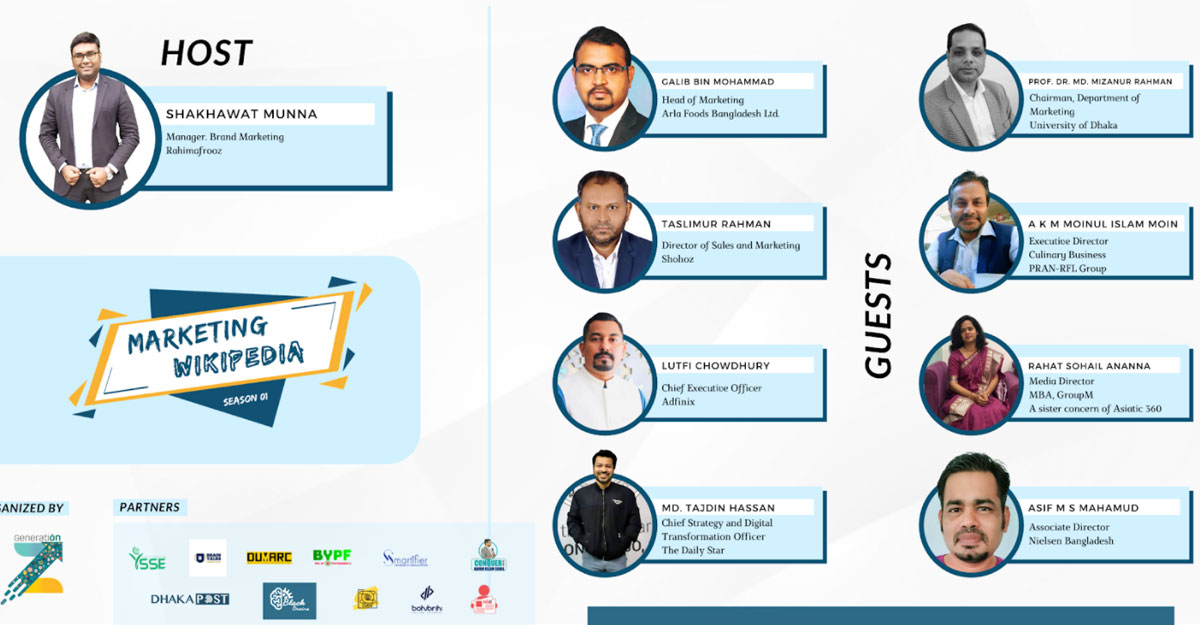 জেনারেশন জেড বাংলাদেশের অধীনে সম্প্রতি অনুষ্ঠিত হলো ক্যারিয়ার বিষয়ক অনলাইন কর্মশালা মার্কেটিং উইকিপিডিয়া: সেশন ওয়ান। তরুণ শিক্ষার্থীদের কর্মজীবনে প্রবেশের পথ আরও সহজ করতে প্রতিষ্ঠানটি নিয়মিত বিভিন্ন ওয়ার্কশপ ও সেমিনার আয়োজন করে আসছে। এরই ধারাবাহিকতায় এবারের কর্মশালাটি অনুষ্ঠিত হলো।