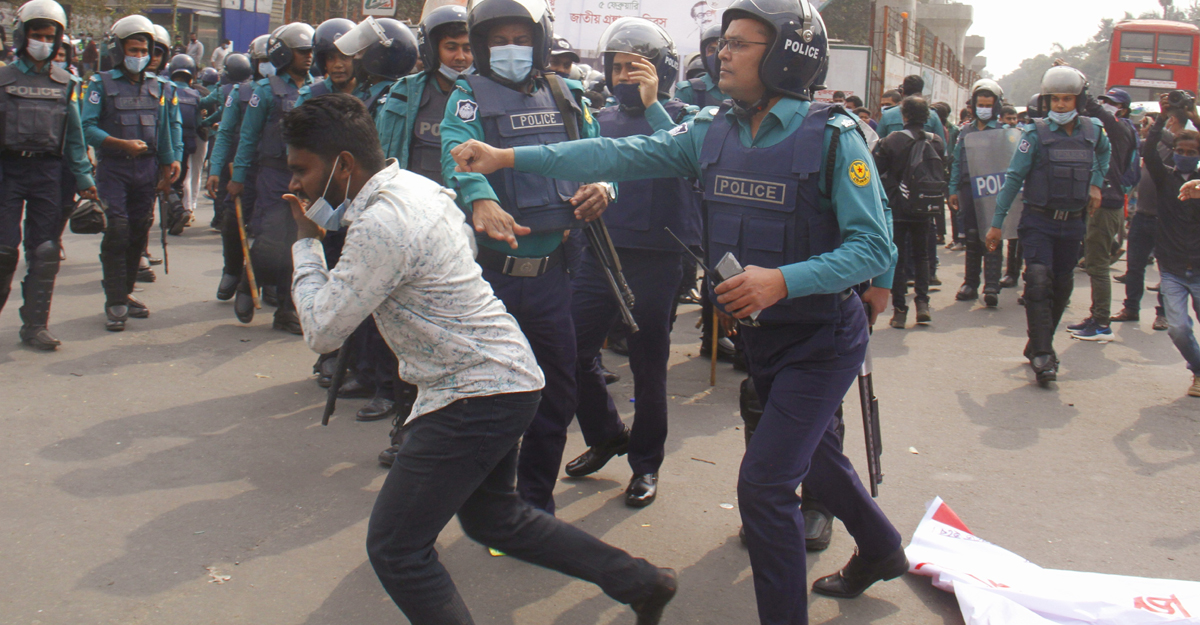 পলিটেকনিক শিক্ষার্থীদের ছত্রভঙ্গ করে দেয় পুলিশ: ছবি- ঢাকা পোস্ট