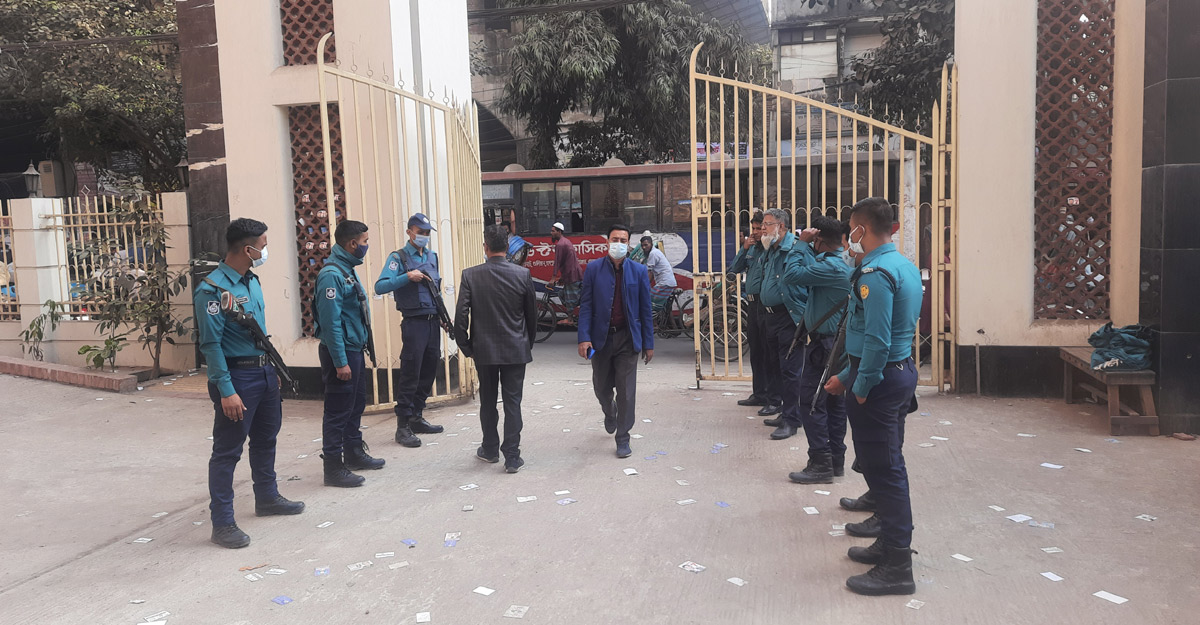 বুধবার (১০ ফেব্রুয়ারি) চীফ জুডিশিয়াল ম্যাজিস্ট্রেট আদালত প্রাঙ্গণ সরেজমিনে ঘুরে দেখা গেছে, আদালত এলাকায় পথচারীদের চলাচলে পুলিশের কড়া নজরদারি। আদালত প্রাঙ্গণে প্রবেশেও চলছে পুলিশি তল্লাশি। শিথিল করা হয়েছে সর্ব সাধারণের চলাচল।