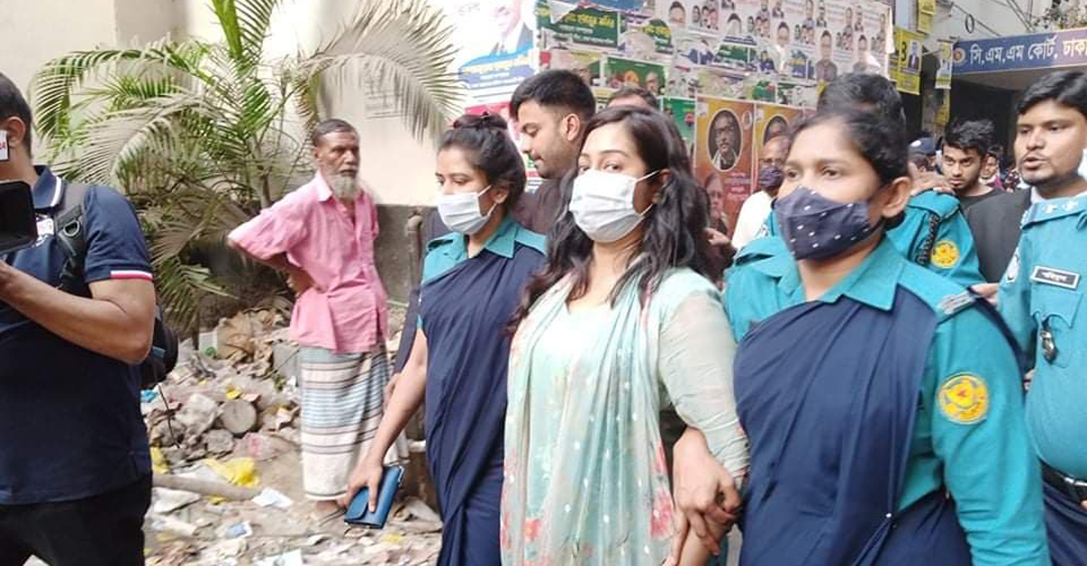 গ্রেফতারের পর অভিনেত্রী রোমানা ইসলাম স্বর্ণা/ ছবি- ঢাকা পোস্ট