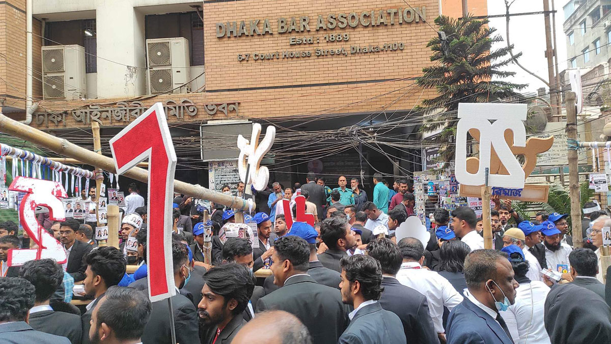 ব্যাপক উৎসাহ ও উদ্দীপনার মধ্য দিয়ে দেশের সর্ববৃহৎ বার ঢাকা আইনজীবী সমিতির ২০২৩-২০২৪ কার্যনির্বাহী পরিষদের নির্বাচনের ভোটগ্রহণ শুরু হয়েছে। দুই দিনব্যাপী এ নির্বাচনের ১ম দিনের ভোটগ্রহণ শুরু হয়েছে বুধবার (২২ ফেব্রুয়ারি) সকাল ৯টায়। মাঝে এক ঘণ্টার জন্য বিরতি দিয়ে ভোটগ্রহণ শেষ হবে বিকেল ৫টায়। একইভাবে বৃহস্পতিবার (২৩ ফেব্রুয়ারি) ভোটগ্রহণ চলবে। এরপর ভোট গণনা শেষে দেওয়া হবে ফল।