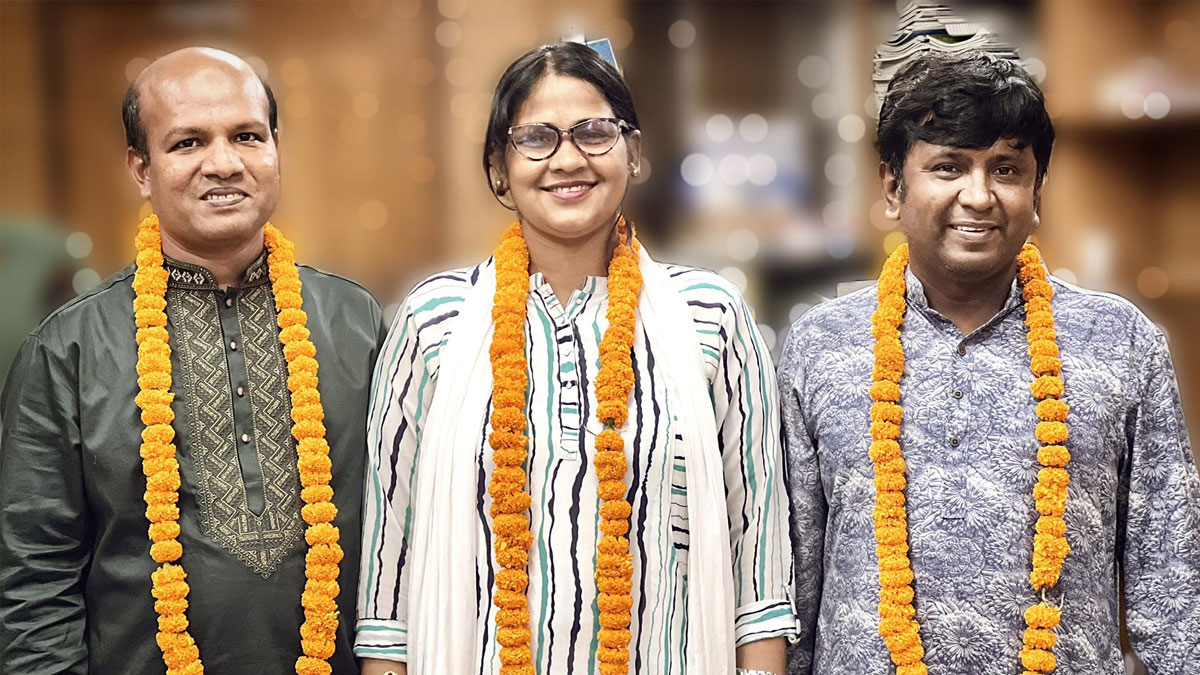 হাবিবুর রহমান (বাঁয়ে), শামীমা আক্তার (মাঝে) ও মেহেদী হাসান ডালিম (ডানে)