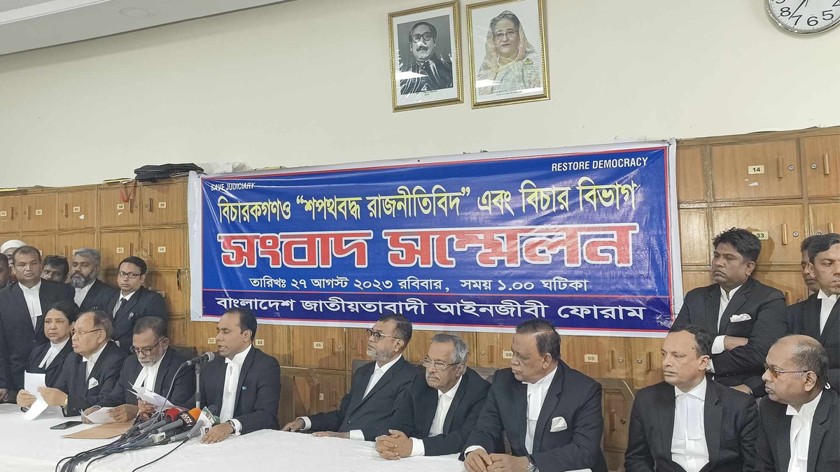 রোববার (২৭ আগস্ট) সুপ্রিম কোর্ট আইনজীবী সমিতি ভবনে জাতীয়তাবাদী আইনজীবী ফোরামের এক সংবাদ সম্মেলনে এ দাবি জানানো হয়।