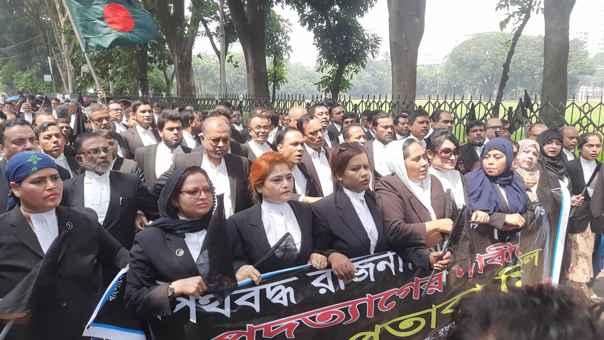 সুপ্রিম কোর্টের বাইরে বিএনপির আইনজীবীদের কালো পতাকা মিছিল