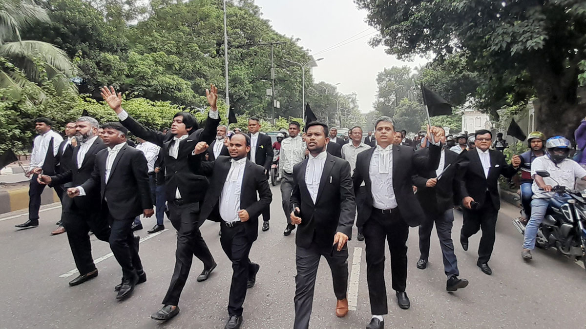 এর আগে জাতীয়তাবাদী আইনজীবী ফোরাম সুপ্রিম কোর্টের ঈদগাহ ময়দানের পাশের গেট থেকে বের হয়ে প্রধান ফটক পর্যন্ত মিছিল করে।