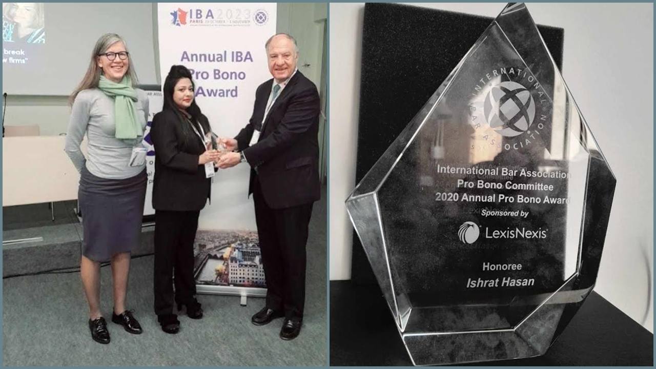 আন্তর্জাতিক বার অ্যাসোসিয়েশনের প্রেসিডেন্ট হোরাসিও বার্নাডে নেটো আইনজীবী ইশরাত হাসানের হাতে এই পুরস্কার তুলে দেন। এ সময় সঙ্গে ছিলেন প্রো-বোনো কমিটির কো-চেয়ার ওডিটি গেলডেনহোয়েস।