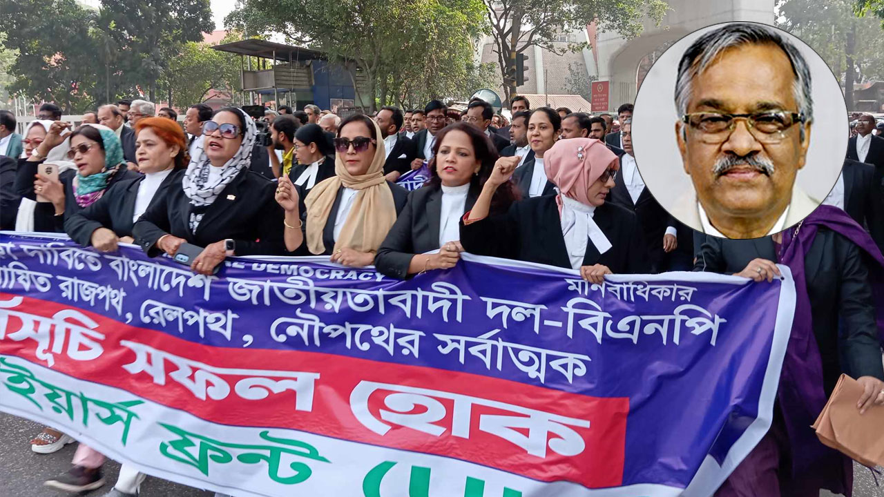 তিনি বলেন, এই অবৈধ সরকারের পতন না হওয়া পর্যন্ত আইনজীবীরা রাজপথে থেকে আন্দোলন চালিয়ে যাবে।