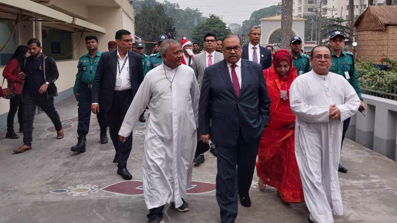 সোমবার (২৫ ডিসেম্বর) বিকেলে আর্চ বিশপের আমন্ত্রণে সস্ত্রীক কাকরাইলের সেন্ট মেরি’স ক্যাথেড্রাল চার্চে যান প্রধান বিচারপতি।