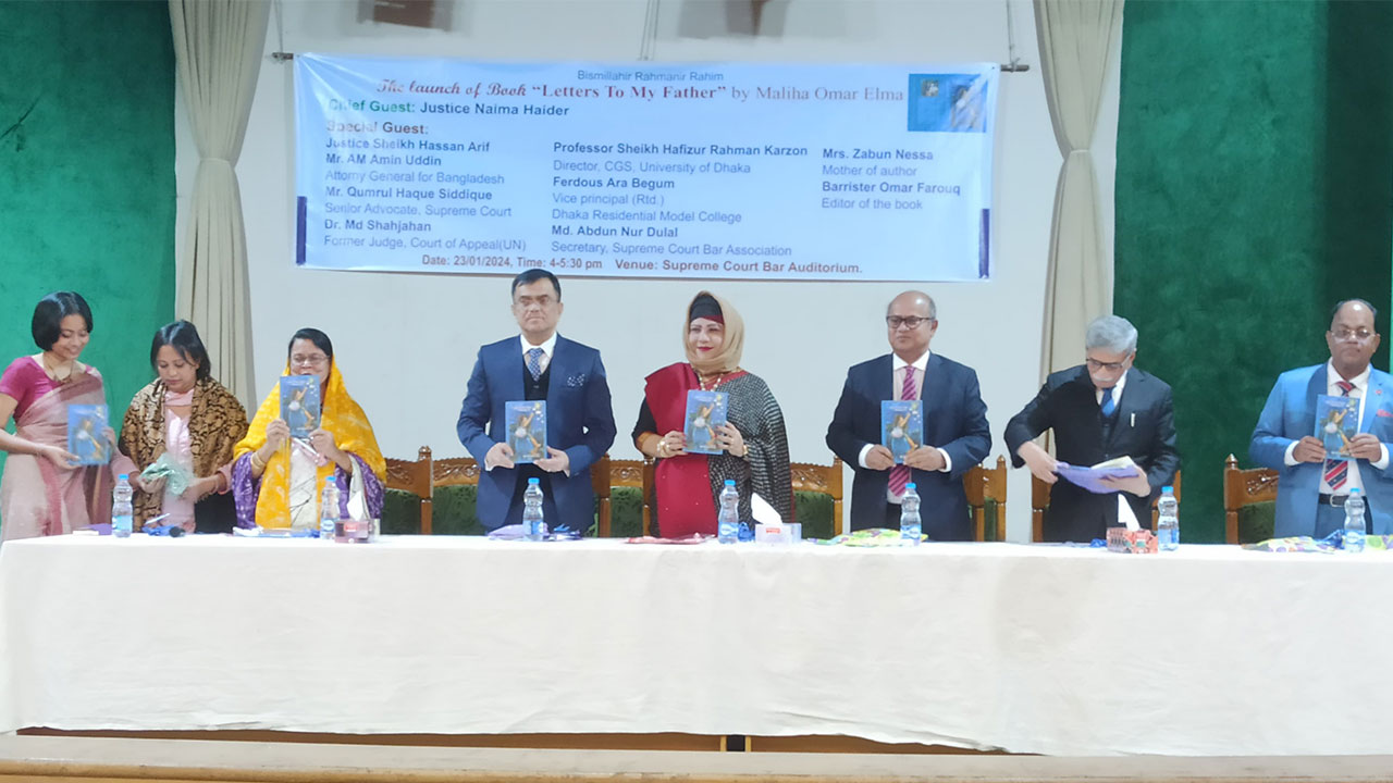 সুপ্রিম কোর্টের আইনজীবী ব্যারিস্টার মো. ওমর ফারুকের মেয়ে মালিহা ওমর ইলমার লেখা ‘লেটারস টু মাই ফাদার’ বইয়ের মোড়ক উন্মোচন করা হয়েছে। এই বইয়ে কানাডায় উচ্চ শিক্ষাকালীন সময়ে তার বাবাকে নিয়ে লেখা চিঠিগুলো স্থান পেয়েছে।