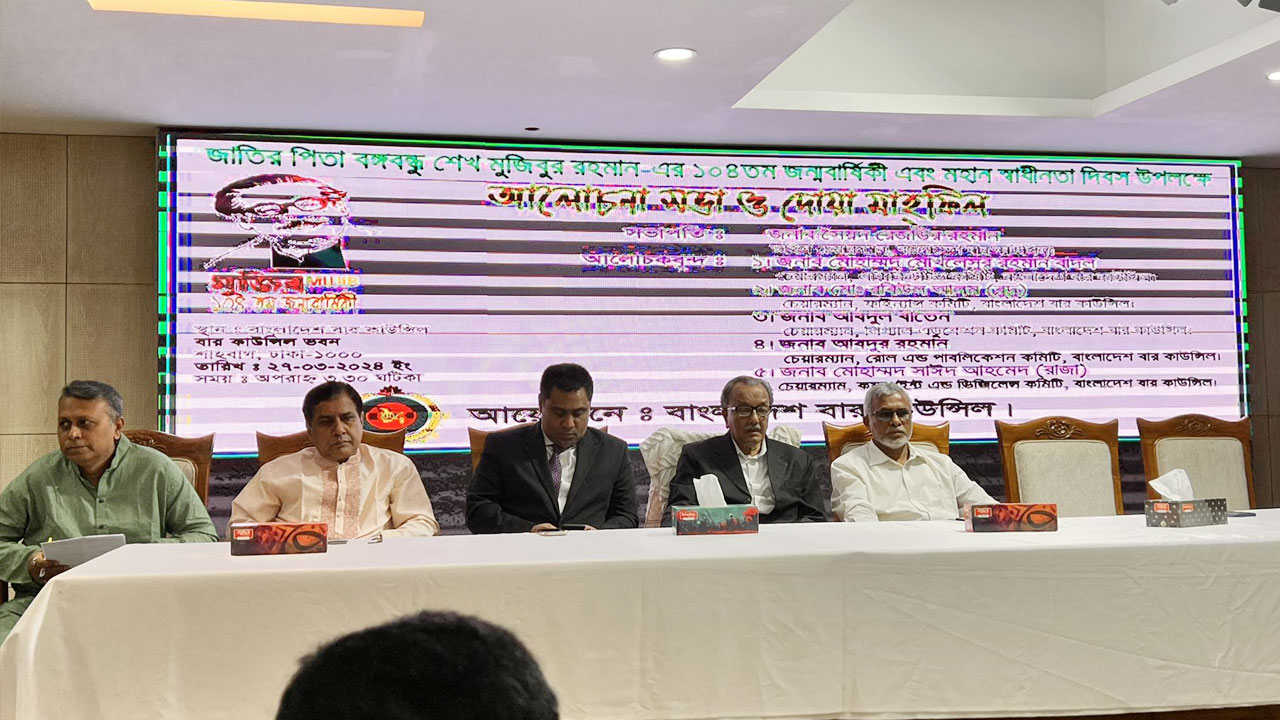 বুধবার (২৭ মার্চ) বার কাউন্সিল ভবনে বঙ্গবন্ধু শেখ মুজিবুর রহমানের ১০৪তম জন্মবার্ষিকী এবং স্বাধীনতা দিবস উপলক্ষ্যে আয়োজিত আলোচনা সভায় বক্তারা এ কথা বলেন।