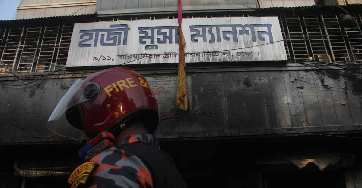 গত ২২ এপ্রিল দিনগত রাত ৩টা ১৮ মিনিটে আরমানিয়ান স্ট্রিটের হাজী মুসা ম্যানশনে আগুনের সূত্রপাত ঘটে। ১৯টি ইউনিটের চেষ্টায় শুক্রবার (২৩ এপ্রিল) সকাল সাড়ে ৬টার দিকে আগুন নিয়ন্ত্রণে আসে।