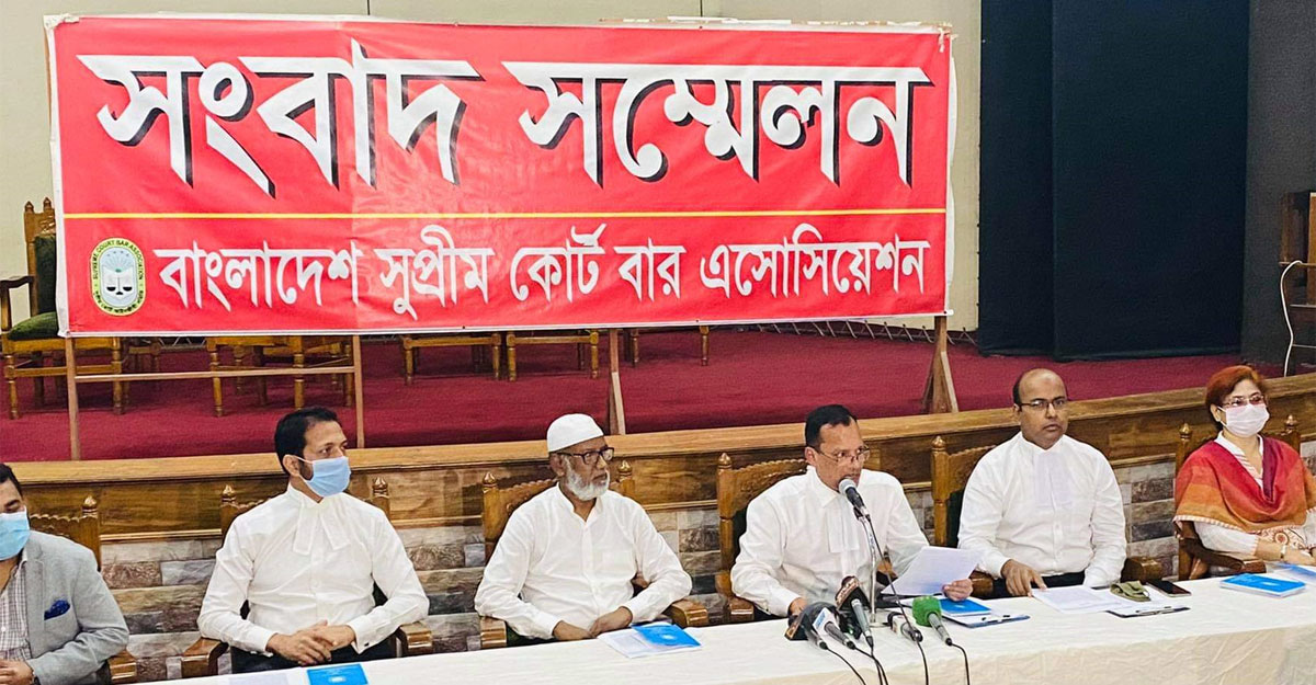 সুপ্রিম কোর্ট বারের সম্পাদক রুহুল কুদ্দুস কাজলের নেতৃত্বে সংবাদ সম্মেলন