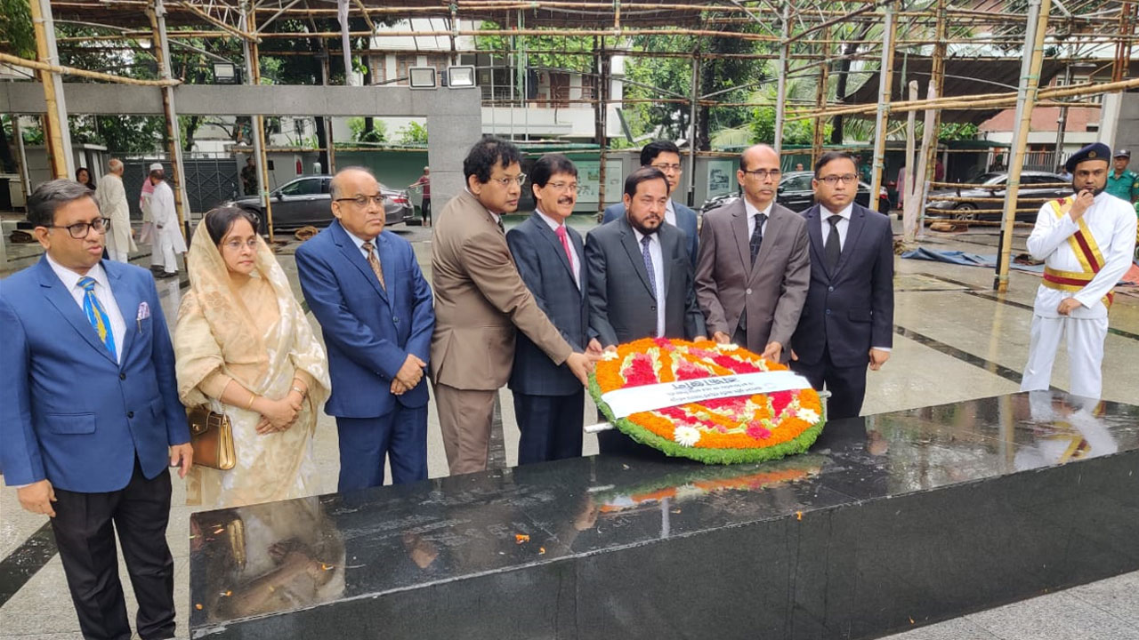 বঙ্গবন্ধুর প্রতিকৃতিতে হাইকোর্টের ৯ বিচারপতির শ্রদ্ধা নিবেদন