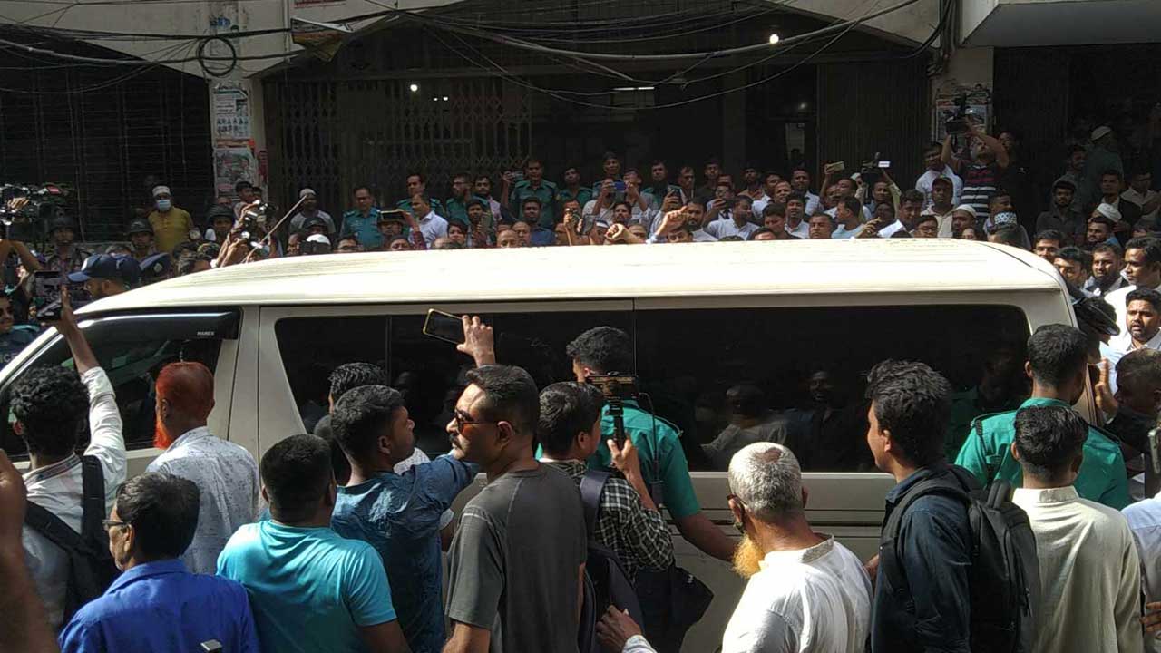 মঙ্গলবার (২০ আগস্ট) বিকেল ৩টা ২০ মিনিটে চিফ মেট্রোপলিটন ম্যাজিস্ট্রেট আদালতে আনা হয় তাদেরকে। পুলিশি পাহাড়ায় প্রিজন ভ্যানে করে তাদেরকে চিফ মেট্রোপলিটন ম্যাজিস্ট্রেট আদালতে আনা হয়। পরে তাদের আদালতের হাজতখানায় রাখা হয়।