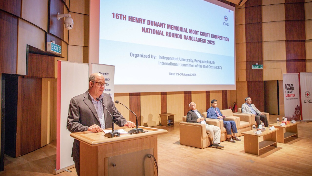 শুক্রবার ইন্ডিপেন্ডেন্ট ইউনিভার্সিটিতে ১৬তম হেনরি ডুনান্ট মেমোরিয়াল মুট কোর্ট প্রতিযোগিতার জাতীয় রাউন্ডের উদ্ধোধনী অনুষ্ঠানে তিনি এসব কথা বলেন।