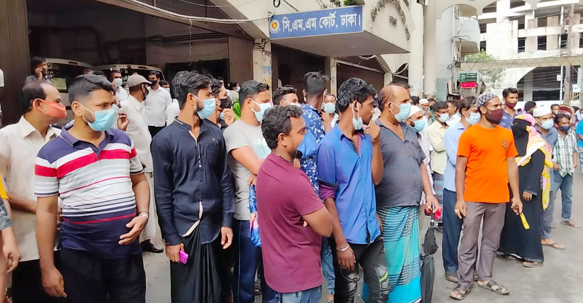 করোনার সংক্রমণ রোধে সরকারের জারি করা কঠোর বিধিনিষেধ (লকডাউন) অমান্য করায় রাজধানীতে অনেককেই গ্রেফতার করা হয়েছে। তাদের ছাড়িয়ে নিতে রোববার (৪ জুলাই) সকাল থেকে ঢাকার চিফ মেট্রোপলিটন ম্যাজিস্ট্রেট আদালতে প্রাঙ্গণে ভিড় করছেন স্বজনরা।