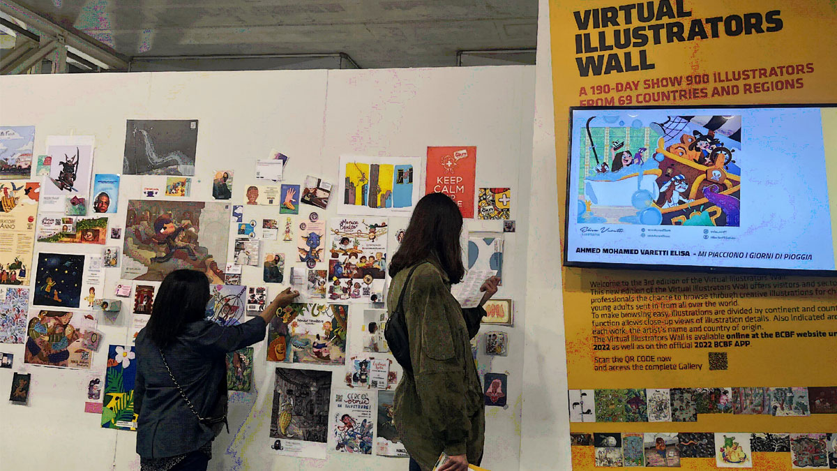 মেলায় প্রবেশপথের কাছেই ছিল আঁকিয়েদের দেয়াল — আয়োজকদের ভাষায় ‘ইলাসস্ট্রেটর’স ওয়াল’। সেই দেয়ালগুলো শিল্পকর্মে ঢাকা। প্রায় সব ছবির ঠিক নিচে শিল্পীদের ভিজিটিং কার্ড। বোলোনিয়ার এই দেওয়ালের অনুসরণে বিশ্বের অনেক বইমেলায় এখন এরকম দেয়ালের দেখা মেলে। দেওয়ালে ঝোলানো শিল্পকর্মগুলো ছিল এক কথায় চমৎকার। তবে ভালো করে খেয়াল করে দেখলাম, বেশির ভাগ শিল্পকর্ম অন্ধকারে ঢাকা ও বিমূর্ত। আমাদের দেশে যেখানে শিশুতোষ বই মানেই অত্যাধিক রঙিন কিছু বোঝায়, সেদিক থেকে এগুলো বেশ ভিন্ন অভিজ্ঞতাই বটে।