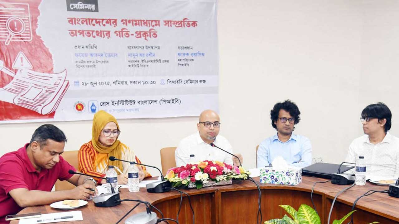 প্রেস ইনস্টিটিউট বাংলাদেশ-এর উদ্যোগে ‘বাংলাদেশের গণমাধ্যমে সাম্প্রতিক অপতথ্যের গতি-প্রকৃতি’ শীর্ষক এক সেমিনার অনুষ্ঠিত হয়েছে। শনিবার সকালে প্রতিষ্ঠানটির সেমিনার কক্ষে এটি অনুষ্ঠিত হয়। বিভিন্ন গণমাধ্যমের সিনিয়র সাংবাদিকরা এতে অংশ নেন।