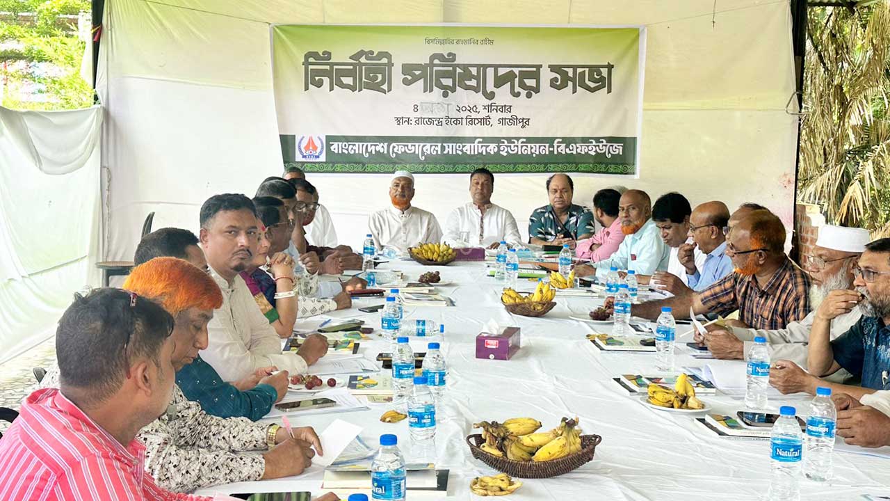 বাংলাদেশ ফেডারেল সাংবাদিক ইউনিয়ন-বিএফইউজের ভারপ্রাপ্ত সভাপতি ওবায়দুর রহমান শাহীনের সভাপতিত্বে ও মহাসচিব কাদের গনি চৌধুরীর সঞ্চালনায় অনুষ্ঠিত সভায় অন্যদের মধ্যে সহ-সভাপতি মুহাম্মদ খায়রুল বাশার,একেএম মোহসীন, সহকারী মহাসচিব বাছির জামাল, ড. সাদিকুল ইসলাম স্বপন ও এহতেশামুল হক শাওন, কোষাধ্যক্ষ শহীদুল ইসলাম, সাংগঠনিক সম্পাদকএরফানুল হক নাহিদ, দফতর সম্পাদক মো. আবু বকর, প্রচার সম্পাদক মো. শাহজাহান সাজু, নির্বাহী কমিটির সদস্য মো. মোদাব্বের হোসেন, অর্পনা রায়, মুহাম্মদ আবু হানিফ, ম.হামিদুল হক মানিক, ঢাকা সাংবাদিক ইউনিয়নের সাধারণ সম্পাদক খুরশীদ আলম, চট্টগ্রাম মেট্রোপলিটন সাংবাদিক ইউনিয়ণের সাধারণ সম্পাদক সালেহ নোমান, সাংবাদিক ইউনিয়ন খুলনার সভাপতি আনিসুজ্জামান আনিস, সাংবাদিক ইউনিয়ন বগুড়ার সভাপতি গনেশ দাশ, কক্সবাজার সাংবাদিক ইউনিয়নের সভাপতি নুরুল ইসলাম হেলালী, সাংবাদিক ইউনিয়ন কুমিল্লার সাধারণ সম্পাদক মো. আবদুল জলিল ভূঁইয়া, সাংবাদিক ইউনিয়ন দিনাজপুর সাধারণ সম্পাদক মাহফুজের রহমান রিপন, সাংবাদিক ইউনিয়ন ময়মনসিংহের সাধারণ সম্পাদক সাইফুল ইসলাম, সাংবাদিক ইউনিয়ন গাজীপুরের সভাপতি এইচ এম দেলোয়ার, সাধারণ সম্পাদক হেদায়েত উল্লাহ, সাংবাদিক ইউনিয়ন ফেনীর সভাপতি সিদ্দিক আল মামুন, বরিশাল জেলা সাংবাদিক ইউনিয়নের সভাপতি আযাদ আলাউদ্দিন, রংপুর সাংবাদিক ইউনিয়নের সভাপতি সালেকুজ্জামান সালেক, সাংবাদিক ইউনিয়ন নারায়ণগঞ্জের সাধারণ সম্পাদক মাহফুজুর রহমান, মুন্সীগঞ্জ সাংবাদিক ইউনিয়নের সাধারণ সম্পাদক সাখাওয়াত হোসেন মানিক প্রমুখ বক্তব্য রাখেন।