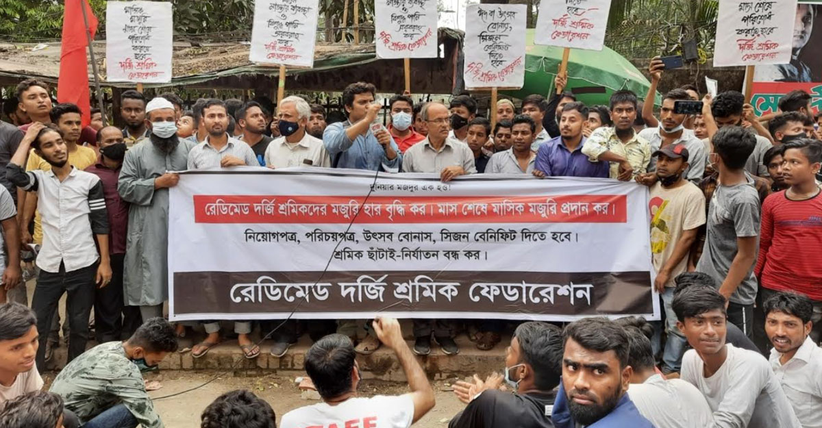 শ্রম আইন অনুসারে বেতন কাঠামো ও প্রাপ্য সব অধিকার প্রদানসহ ৮ দফা দাবি জানিয়েছে রেডিমেড দর্জি শ্রমিক ফেডারেশন।