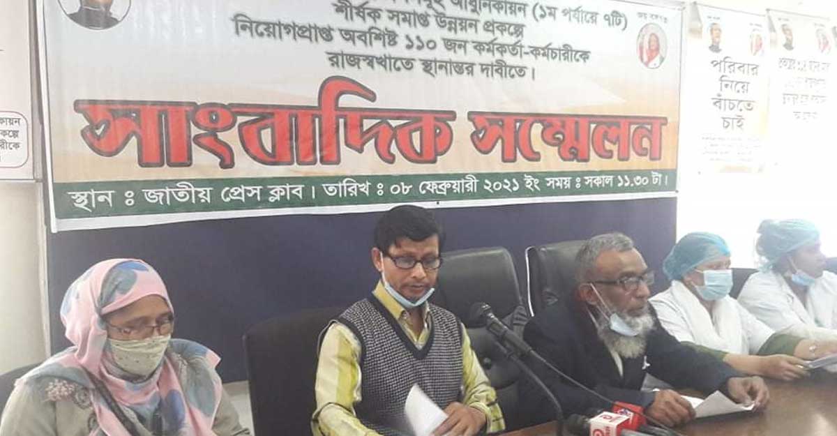 ১১০ কর্মকর্তা-কর্মচারীকে রাজস্ব খাতে স্থানান্তরের দাবি