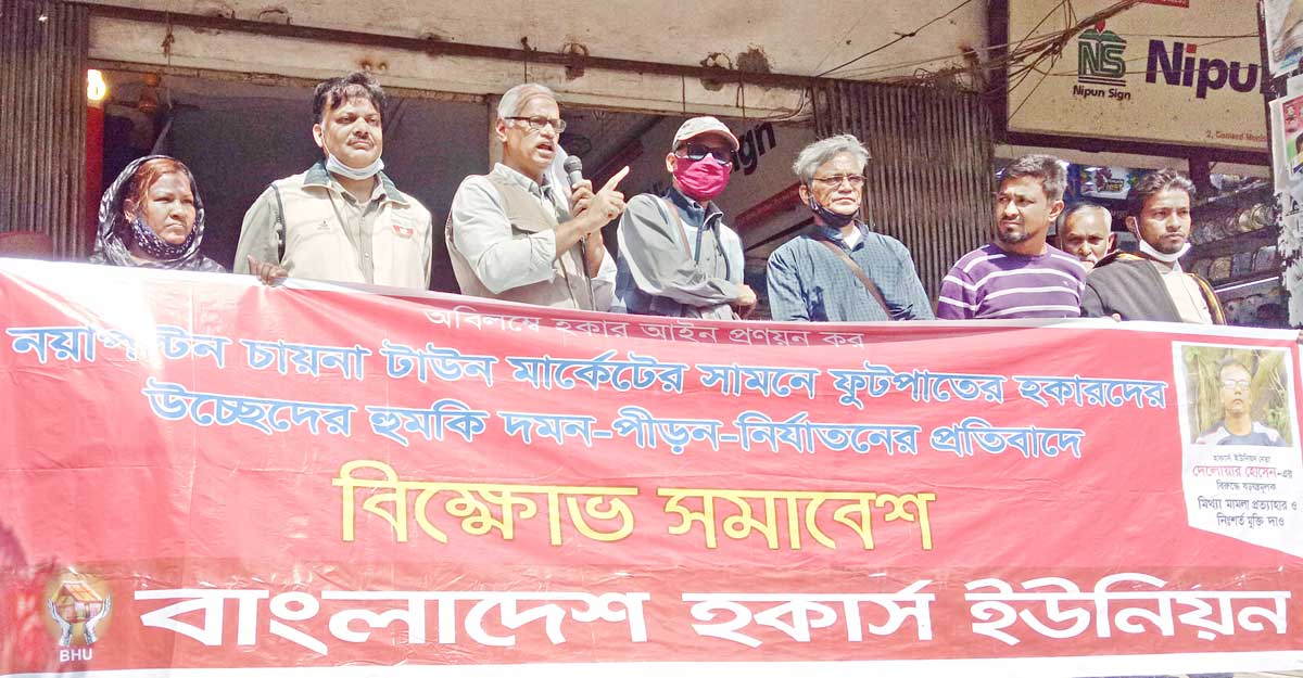 হকারদের উচ্ছেদের প্রতিবাদে বিক্ষোভ সমাবেশ/ ছবি: ঢাকা পোস্ট