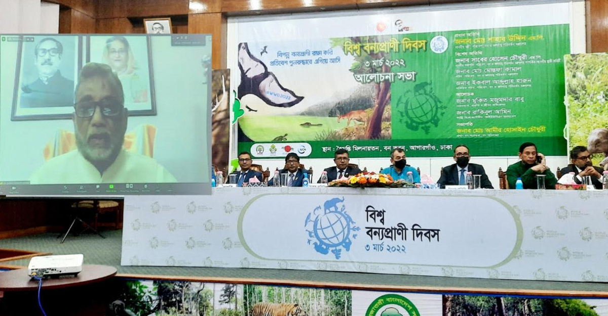 বৃহস্পতিবার (৩ মার্চ) বিশ্ব বন্যপ্রাণী দিবস ২০২২ উপলক্ষে বন অধিদপ্তরে আয়োজিত আলোচনা সভায় অনলাইনে যুক্ত হয়ে তিনি এসব কথা বলেন। বন্যপ্রাণী দিবসে এবারের প্রতিপাদ্য ‘বিপন্ন বন্যপ্রাণী রক্ষা করি, প্রতিবেশ পুনরুদ্ধারে এগিয়ে আসি।’