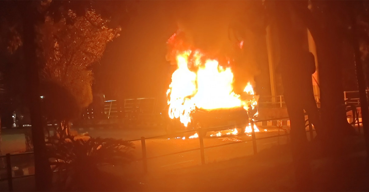 হাতিরঝিলে প্রাইভেটকারে আগুন