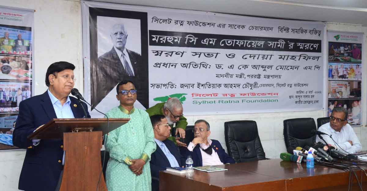 শনিবার (৫ মার্চ) রাজধানীর প্রেস ক্লাবে সিলেট রত্ন ফাউন্ডেশনের সাবেক চেয়ারম্যান সি এম তোফায়েল সামীর স্মরণে এক সভা শেষে তিনি এ কথা বলেন।