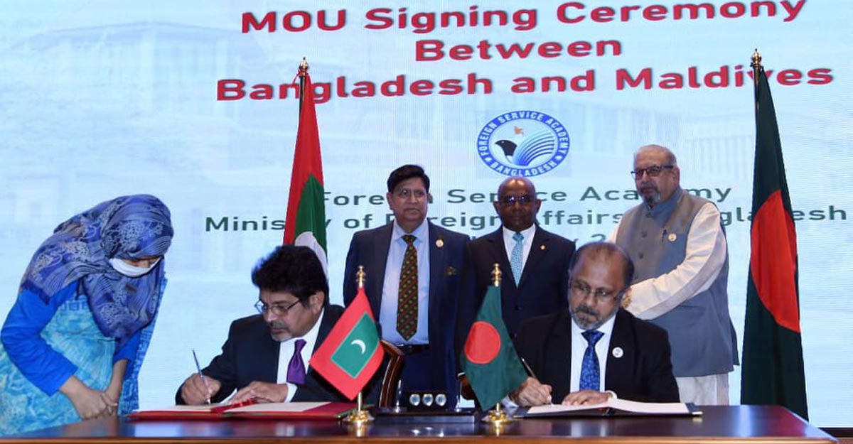 দুই দেশের মধ্যে জনশক্তি রপ্তানি ও বাংলাদেশের ফরেন সার্ভিস একাডেমির সঙ্গে মালদ্বীপের ফরেন সার্ভিস ইনস্টিটিউটের সমঝোতা স্মারক সই করেছে ঢাকা-মালে।