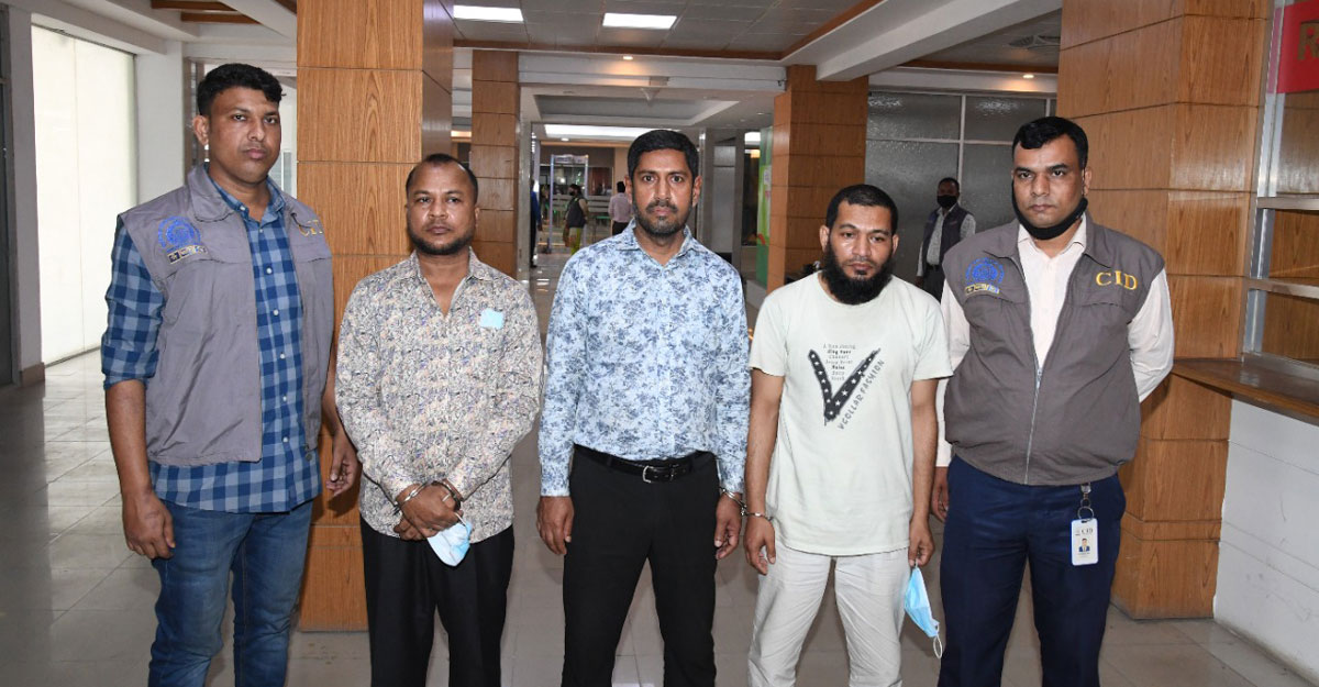 গ্রেপ্তাররা হলেন— মো. আলমগীর হোসাইন (৪৮), মো. শফিকুল ইসলাম (৪৬), মো. ইমরান হোসাইন (৪৪)। গ্রেপ্তারের সময় তাদের কাছ থেকে ৬টি মোবাইল, বিভিন্ন ব্যাংকের চেক বই, ভুয়া ওয়ার্ক অর্ডারের কপি, সাপ্লায়ারদের সঙ্গে স্ট্যাম্প চুক্তিপত্রের কপি ও একটি ১০ কোটি টাকা কাবিনের ফটোকপি জব্দ করা হয়।