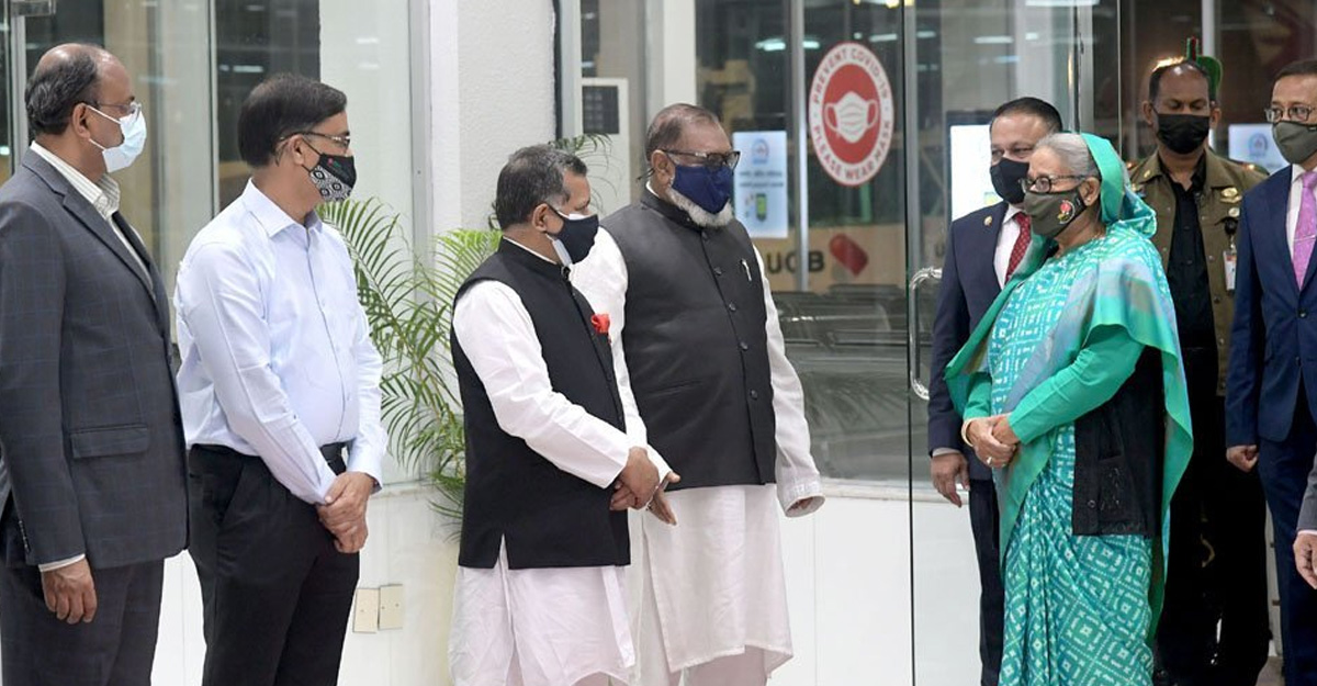 পররাষ্ট্রমন্ত্রী ড. এ কে আব্দুল মোমেন, বাণিজ্যমন্ত্রী টিপু মুনশি, প্রবাসী কল্যাণ ও বৈদেশিক কর্মসংস্থান মন্ত্রী ইমরান আহমদ, প্রধানমন্ত্রীর বেসরকারি শিল্প ও বিনিয়োগ বিষয়ক উপদেষ্টা সালমান এফ রহমান এবং মহিলা ও শিশু বিষয়ক প্রতিমন্ত্রী ফজিলাতুন নেসা ইন্দিরা প্রধানমন্ত্রীর সঙ্গে ছিলেন।