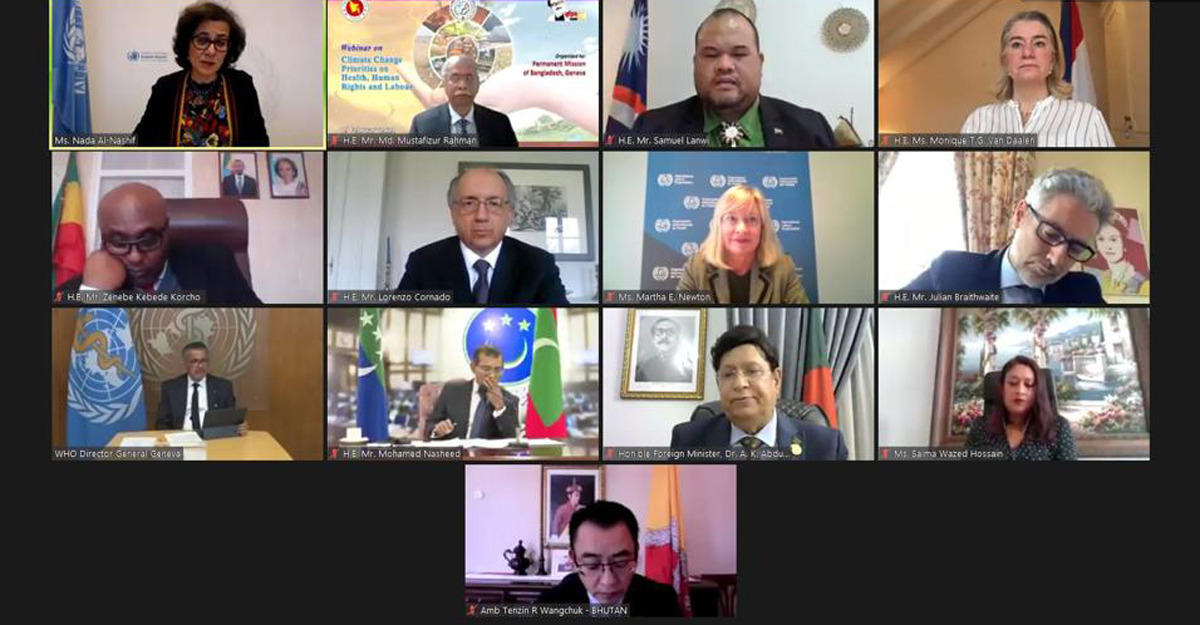 ‘জলবায়ু পরিবর্তনের প্রেক্ষিতে শ্রম, মানবাধিকার ও স্বাস্থ্য খাতের অগ্রাধিকারসমূহ’ শীর্ষক এক ভার্চুয়াল অনুষ্ঠানে কথা বলেন পররাষ্ট্রমন্ত্রী
